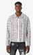 A bold evolution of the flannel shirt, the Ice Dust Cross Flannel fuses grunge patterns with luxury craftsmanship. Built from soft brushed cotton in bleached lilac and grey tones, this piece is elevated with shimmering embellishments and bold graphic detailing.